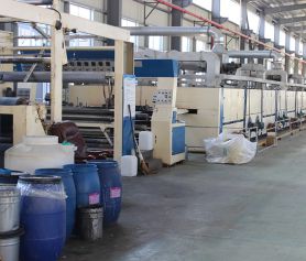 引進(jìn)國外水刺法生產(chǎn)流水線,重型劍桿織布機臺,整形、熱熔、縫制、設(shè)備配套齊全。